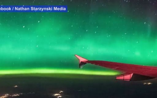 Пассажиры самолета снял видео северного сияния с борта лайнера
