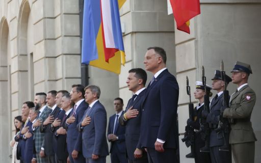 Президент Украины Владимир Зеленский пребывает с рабочим визитом в Польше. Сейчас ведутся двусторонние переговоры с президентом Польши Анджеем Дудой