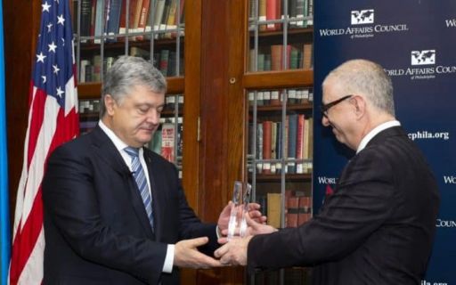 Пребывая с рабочим визитом в Соединенных Штатах Америки Петр Порошенко был удостоен отличия «Международный государственный деятель» Советом по вопросам международных дел Филадельфии