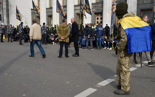 Сегодня под стенами Верховной Рады в центре Киева проходит "вече", на котором к участникам акции обратятся ветераны АТО и экс-глава Одесской обладминистрации Михаил Саакашвили