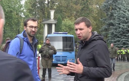 Митингующие под возгласы "мудак" забросали яйцами депутата Гончаренко. Народный избранник пытался пройти через толпу митингующих к зданию парламента.
