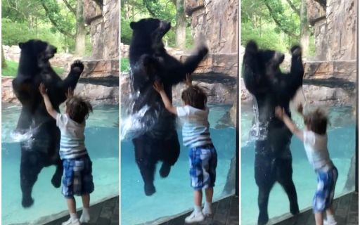 Забавная история произошла в Нэшвилле, в парке Nashville Zoo at Grassmere - здесь пятилетний мальчик и пятилетний очковый медведь устроили настоящее состязание, кто выше прыгнет.