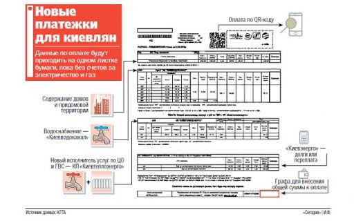 Уже на этой недели жители столицы Украины увидят в своих почтовых ящиках платежки новых образцов - так называемые единые платежки, в которых объединят информацию по нескольким отдельным пунктам.