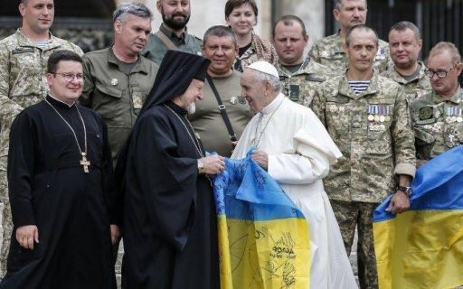 Глава католической церкви, Папа Римский Франциск встретился с украинскими военными в Риме на площади Святого Петра. Делегацию возглавлял владыка Михаил Колтун, руководитель Департамента военного капелланства УГКЦ