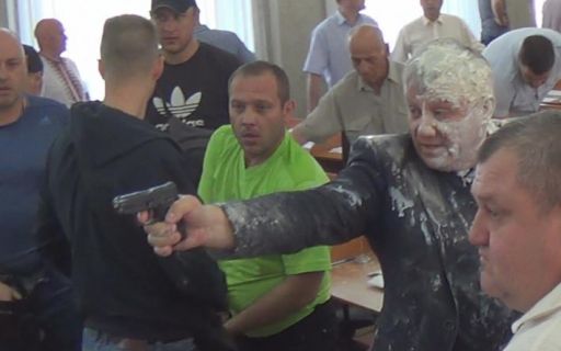 В городе Никополь Днепропетровской области произошла стрельба на заседании внеочередной сессии горсовета.Так, депутата-стрелка облили кефиром, городского главу Андрея Фисака – зеленкой.