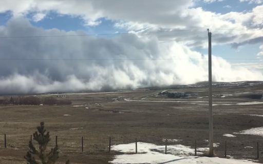 В Канаде местной жительнице удалось заснять необычное погодное явление - по провинции Альберта прокатилось воздушное цунами, принесшее с собой снегопад