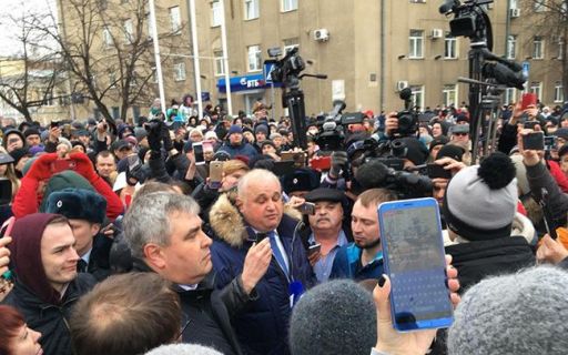 В Кемерово из-за трагедии в ТЦ «Зимняя вишня» на площади перед администрацией собрались люди, требующие отстранить от должности губернатора Кемеровской области Амана Тулеева. Толпа не верит в 64 погибших. По их мнению жертв намного больше.