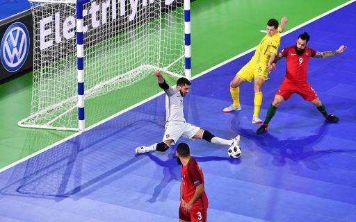 На чемпионате Европы по футзалу в Словении сборная Украины проиграла Португалии (3:5) и теперь в 1/4 финала нашу сборную ждёт встреча с семикратными чемпионами Европы испанцами.