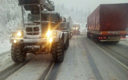 В высокогорных районах Закарпатской области, а также на трассах региона наблюдается сильный мокрый снег. Работникам ГСЧС Украины приходится вытягивать автомобили из снежного плена, а также убирать поваленные деревья.