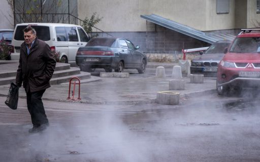В Киеве продолжается сезон аварий на теплотрассах - на этот раз прорвало трубу на территории микрорайона Отрадный, поэтому часть улиц была залита кипятком