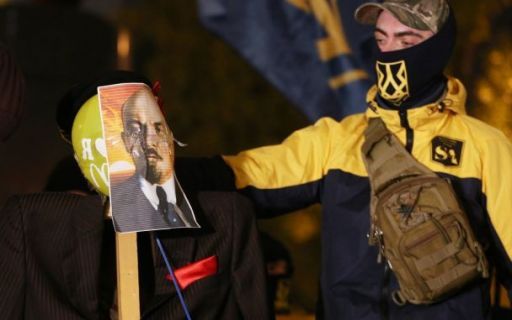 Чучело Ленина было сделано активистами сегодня вечером. После этого они приступили к ритуальному сожжению вождя, что символизировало их протест против коммунизма