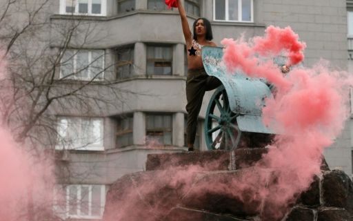 Скандальная активистка Femen отпраздновала 100-летие со дня начала Октябрьской революции. В столице Украины девушка провела очередную провокационную акцию