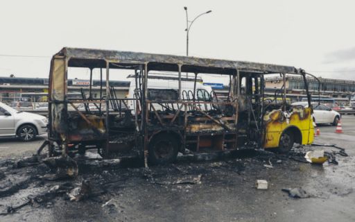 В Киеве возле станции метро «Лесовая» дотла сгорело маршрутное такси. В сало автомобиля закинули бутылку с зажигательной смесью