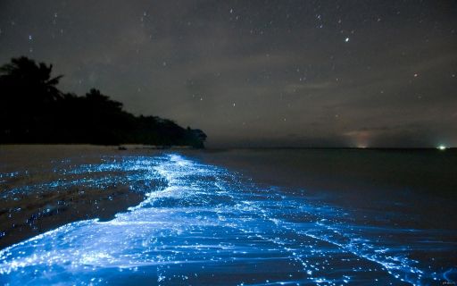 Практически круглый год на Мальдивских островах, Ваадху, можно увидеть восьмое чудо света - планктон, который в вечернее время светится. Его цвет - ярко синий.