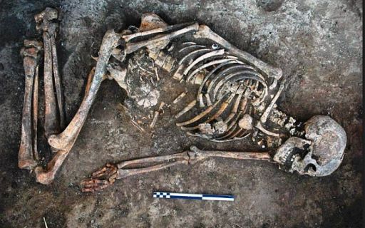 Международная группа исследователей во время раскопок кургана, расположенного недалеко от села Пороги, обнаружила уникальные останки женщины с рисунками на костях - возраст скелета приблизительно 4,5 тысячи лет