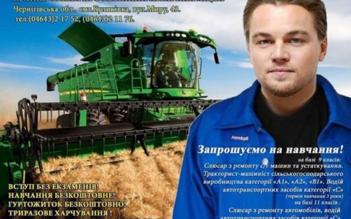 43-летний голливудский актер, звезда "Титаника" и "Пляжа" стал "лицом" рекламной кампании Куликовского аграрного лицея - звезда голливуда предлагает украинцам учиться на трактористов и слесарей