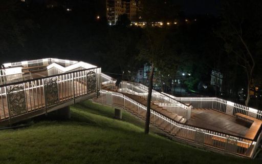 Мэр Киева открыл после реконструкции лестницу с Пейзажной аллеи к Андреевскому спуску и Воздвиженке (от Десятинного переулка до улицы Гончарной). Лестница спроектирована как монолитная бетонная конструкция с деревянными накладками на ступеньках