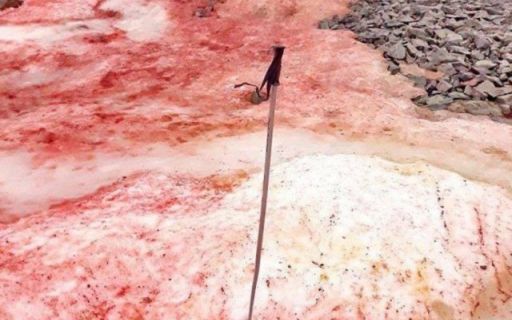 В Антарктиде началось бурное цветение снежной хламидомонады, снег окрасился в красный цвет, учёные на станции «Академик Вернадский» изучают данное явление