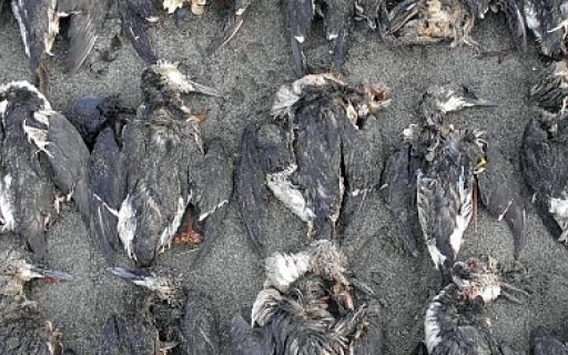 Из-за образовавшегося в Тихом океане "тёплого пятна" погиболо более миллиона водоплавающих птиц, нехватка пищи также губит китов и других морских млекопитающих