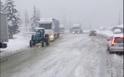 Из-за ухудшения погодных условий в Закарпатской области ограничили движение габаритного транспорта. На трассах спецтехника помогает освобождать грузовики из "снежного плена"
