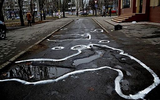 Днепровские активисты обводят краской ямы на дорогах. Таким способом они хотят обезопасить пути, и привлечь внимание власти к необходимости ремонта
