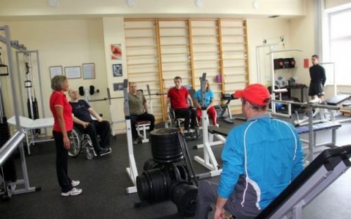 В волонтёрском спортзале тренера подбирают индивидуальные упражнения для людей с инвалидностью