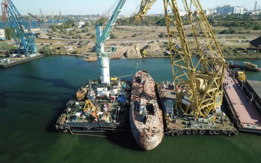 Многострадальный танкер "Делфи", который затонул у берегов Одессы осенью прошлого года, наконец-то поднят на киль для проведения ремонтных работ