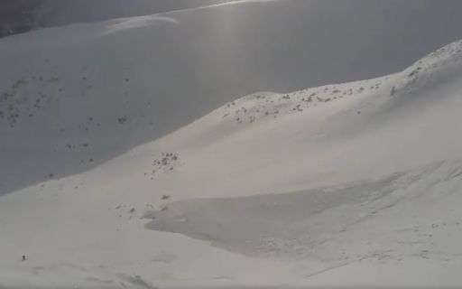 В сети появилось видео, на котором сноубордисту на заснеженном склоне чудом удалось не попасть под завалы снежной лавины. Спортсмену удалось сориентироваться и объехать лавину