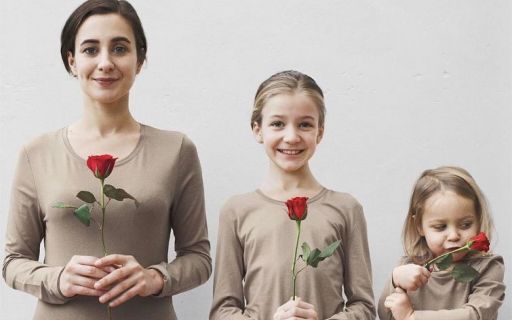 Мама двух девочек делает фотографии себя и дочерей, одетых в одинаковую одежду в популярном стиле Family Look