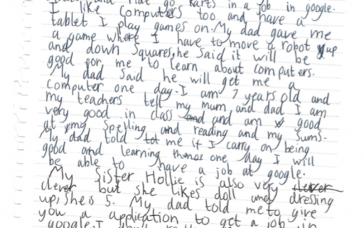 7-летняя девочка из британского города Херефорд написала трогательное письмо в компанию Google с просьбой взять ее на работу
