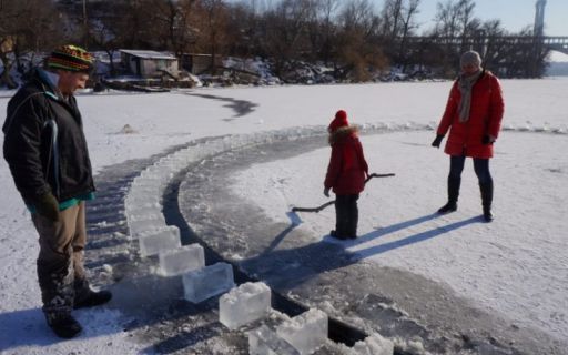 В Запорожье появился удивительный зимний арт-объект, который находится посередине замершего Днепра