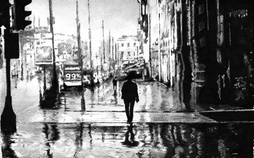 Художник рисует реалистичный пейзаж обычной шариковой ручкой