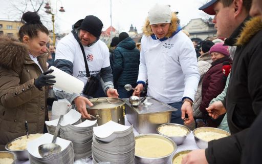 В Ивано-Франковске лучшие повара города с помощью силачей сварили почти полторы тонны вкуснейшего баноша, установив новый рекорд Украины
