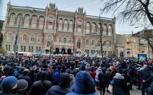 Под зданием НБУ возобновился митинг при участии работников завода Коломойского. Люди хотят ответственности за коррупцию в центробанке