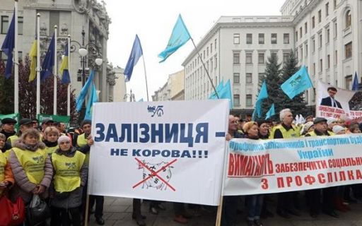 Под Офисом президента митинговали работники железной дороги. Демонстранты требовали увольнения главы "Укрзализныци" и повышения зарплат