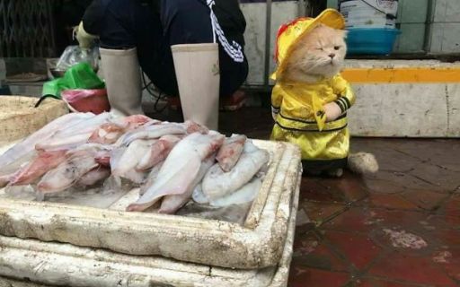 Необычный продавец рыбы объявился на вьетнамском рынке - забавный рыжий кот в различных костюмах, очках и головных уборах помогает хозяину зарабатывать на жизнь