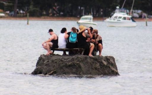 В Новой Зеландии компания друзей решила пойти экстравагантным путем, насыпав себе маленький остров, расположенный в прибрежных водах, дабы весело встретить Новый 2018 год