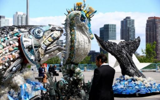На площади возле штаб-квартиры ООН появились скульптуры из мусора мирового океана