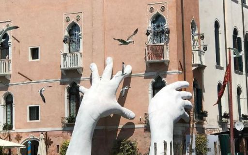 На улице итальянского города появились гигантские руки