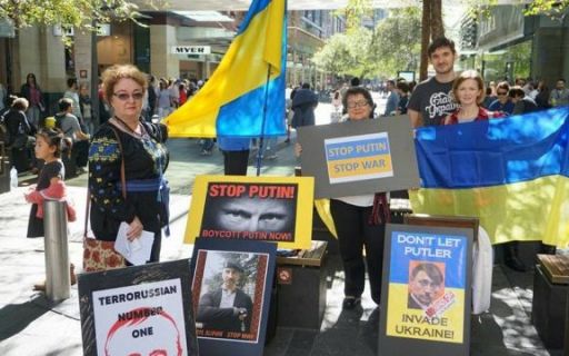 Украинская община в Австралии провела протесты в рамках всемирной акции "Stop Putin's war in Ukraine" ("Остановить войну Путина в Украине"). Митинг прошел в Сиднее, на одной из центральных улиц Питт Стрит, канберрская община поддержала акцию собрание