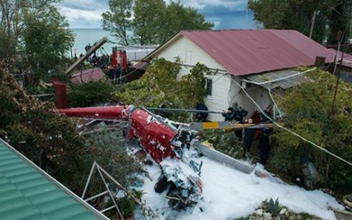 В Сочи вертолет упал на частный дом, погиб человек.