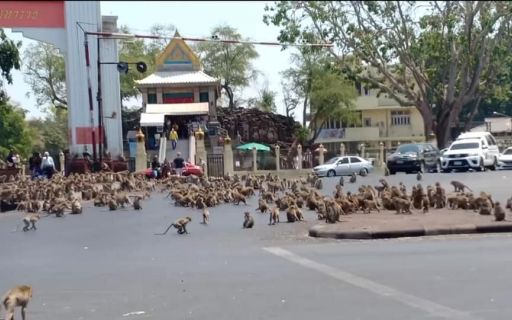 В одном из районов Таиланда наблюдается массовое нашествие обезьян, которые из-за отсутствия туристов, подкармливающие их, направились за пищей в города