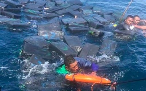 Корабль контрабандистов перевернулся, когда его накрыло волной. Три мужчины выжили, держась на плаву, благодаря герметичным пакетам - внутри была тонна кокаина