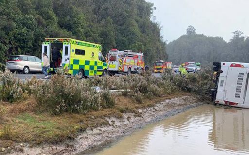 Из-за непогоды пассажирский автобус перевернулся на скоростном шоссе. В автобусе ехали туристы-иностранцы. Шесть человек погибли в результате ДТП